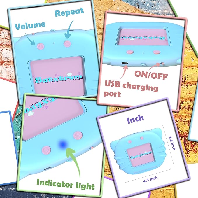 - Screenless Eye Protection Design—Satxtrem talking flash cards design is simple and cute, no screen design to protect children's eyes, keep children away from mobile phones and computers, colorful flash cards and cute sight words relieve visual fatigue. USB charging for long time play, auto power off, 5-level adjustable volume, repeat playback, English&Chinese bilingual switching, let children learning while playing.
