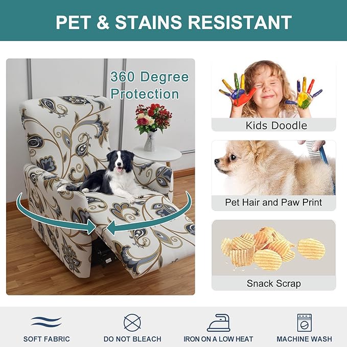 - Furniture Protector: NILUOH recliner sofa slipcovers constructed with thick elastic bands to cover the bottom edges well for a full protection. Protect your sofa from spills, stains and tearing. Our armchair slipcover is a great choice for homes with children and pets. Update your decor with the recliner slipcovers.