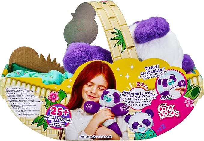 Little Live Pets WODJ4 Cozy Dozys: Petals The Panda | Interactive Plush Toy Panda. 25+ Sounds and Reactions. Magical Eye Movement. Blanket, Pacifier for Kids Ages 4+, Multicolor (26400)