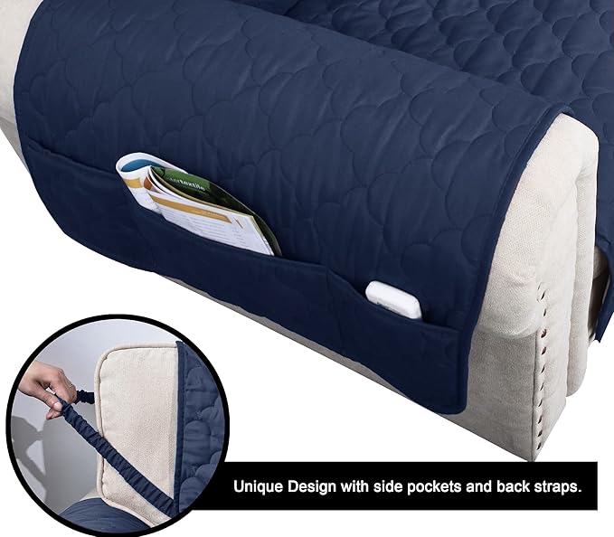 CHHKON Waterproof Nonslip Recliner Cover Stay in Place Dog Couch Chair Cover Furniture Protector Ideal Sofa Slipcovers for Pets and Kids (Navy, 30'')