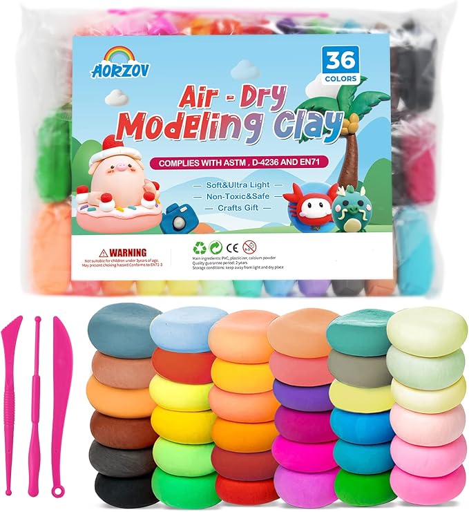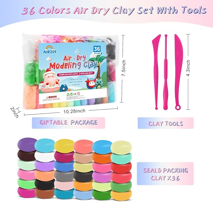 - ✔【clay set】36 colors air dry clay set with 3 sculpting tools, You can mix a variety of colored clays if you want more kinds of colors..