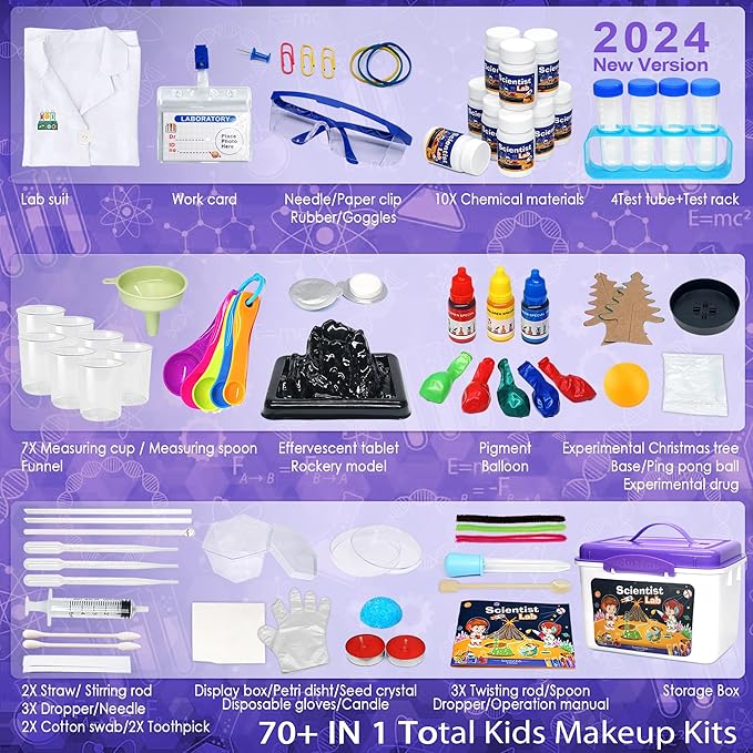 - [70+ PCS Rich Science Experiment Kits] The kit comes with everything you need to perform these science projects, Including laboratory equipment, experimental materials, personal protection kit, instructions, storage box, except for basic household items, like dish soap and water. Your kids can easily do science projects with items at home, adult supervision is advised for young children