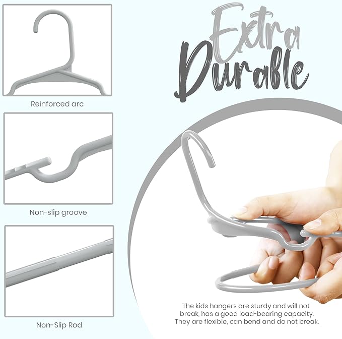 - Kids Clothes Hanger – The pack contains non-slip and crease-resistant children hangers with each measuring, 11.5 x 6.25 x 0.21 (inches) dimensions. Ideal for hanging kids, toddlers and infants clothing