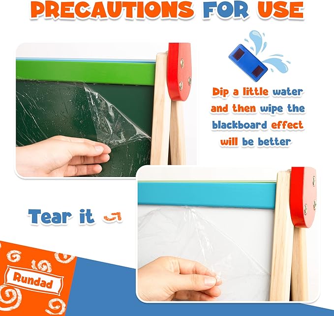 - [Double-sided Kid's Easel] This is a highly innovative design that integrates a children's drawing board with a chalkboard, a white dry erase board that can support paper rolls for painting while the chalkboard is suitable for children to doodle and learn at will. This is a fun toy and will continue to inspire a new generation of future painting artists.