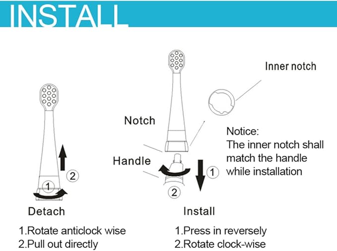 - Easy to Replace - These SEAGO toothbrush replacement heads kids have a Slim design, comfortable brushing feeling. When it's needed, just twist and remove the old SEAGO kids toothbrush replacement heads, then install the new toothbrush head, twist, and lock for a quiet, it's quick and easy to change sonic toothbrush heads replacement.