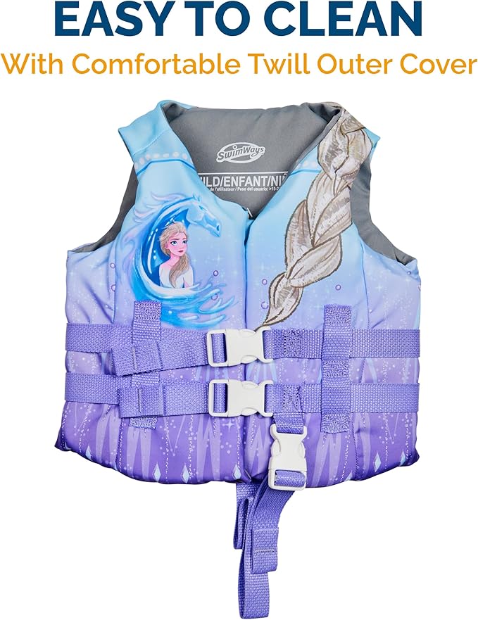SwimWays Disney Princess Swim Trainer Life Jacket, US Coast Guard Approved Life Vest Kids Swim Vest, Pool Floats & Life Jackets for Kids 33-55 lbs, Elsa