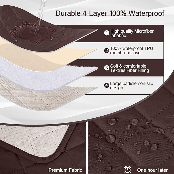 - 100% Waterproof & Comfortable: (This Recliner Couch Cover is Patented) KinCam recliner chair cover is made of high quality 100% waterproof polyester, which inner layer is filled with durable fabric, feel very cool to touch, comfortable and durable