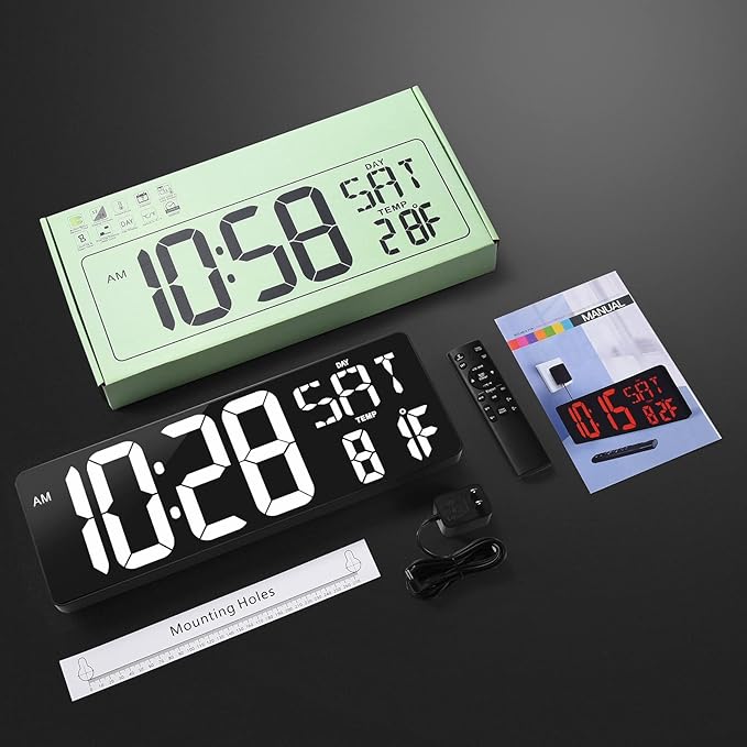 - Large screen 4 gear brightness adjustment: The large 16.5-inch screen and Big numbers,Easy to Read screen,4 level- Remote control adjusts brightness.Comfortable visual experience.It's very comfortable to watch time during the day, and it won't affect rest at night.