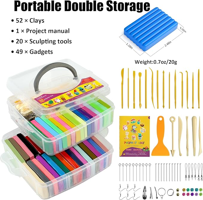 - Included Components : 49 decorative accessories, 1 project manual, 52 colors polymer clay, 20 clay sculpting tools
