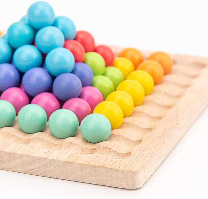 LOVEALOTTER Wooden Board Bead Game, Montessori Board Beads Game, Early Educational Preschool Toy, Color Sorting Toys for Toddlers, Fine Motor Training for Children, Great Gift for Kids, for Seniors