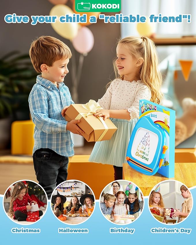 - 【Mom's Helper】KOKODI colorful magnetic doodle for toddlers is easy to use without limiting its fun. It's easy to draw on and easy to remove. It will keep kids busy without any help! Awesome toddler toys for ASD Autism kids. This vivid drawing board is a good helper to accompany kids' growth while stimulating creativity & imagination, cultivating patience and improving hand coordination.