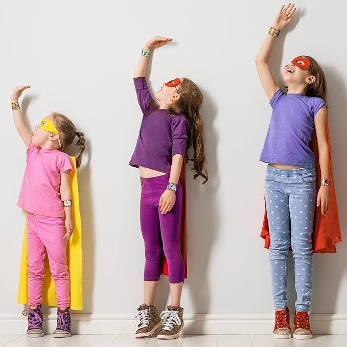 - Multiple Use: this hero slap bracelet is suitable for hero party favors, birthday party supplies, hero decorations, masquerade, dress up or cosplay, and you can use them as carnival prizes, school prizes, party gift fillings for birthday party gift bags fillings