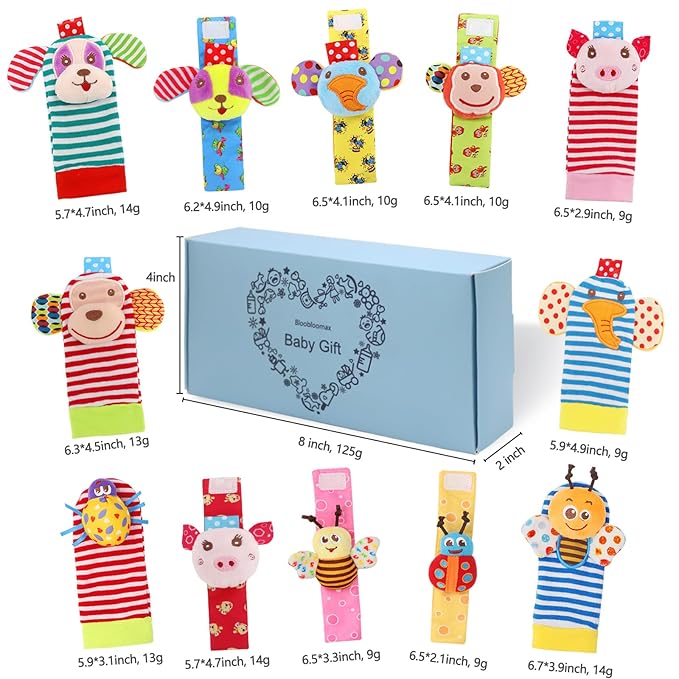 Bloobloomax Baby Soft Toy Foot Finder Socks Wrists Rattles - Ankle Leg Hand Arm Feet Rattle Toy Set- Newborn Present for Infant Toddler Boy Girl 0 3 6 9 12 24 36 Months
