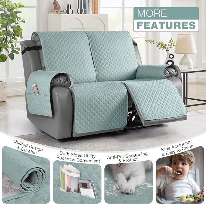 TAOCOCO Loveseat Recliner Cover Non-Slip Sofa Slipcover, Pet Cover for Loveseat Recliner with Elastic Straps, Washable Reclining Loveseat Cover Recliner Furniture Protector (2 Seater, Mint)