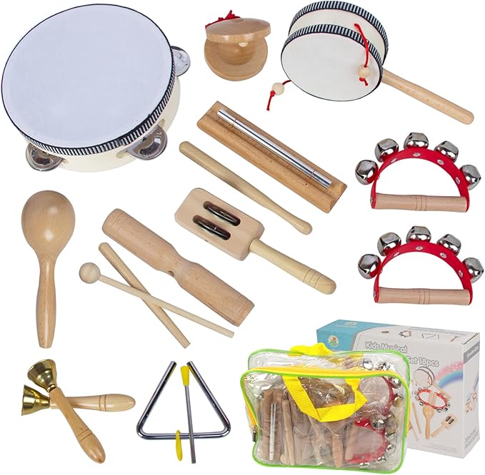- 【Montessori Toys for Toddlers】: The instruments toy set inspires children’s sense of sight, hearing and touch. It will be helpful to cultivate the kids’ sensitivity of music and the percept of rhythm, improve the creativity and the ability to distinguish instruments, and develop the kids’ interests