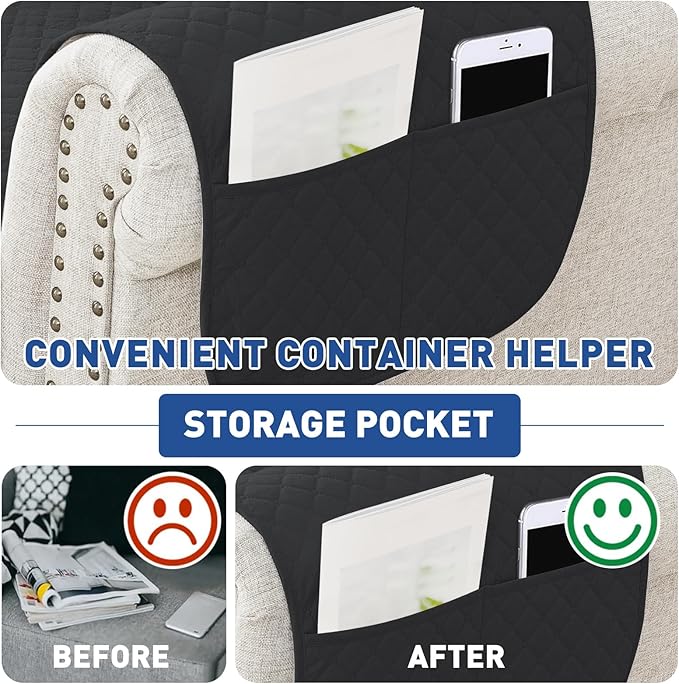- 【Universal Slipcover】 This modern sofa covers for living room is one-size-fits most, sofa, loveseat, recliner, t-cushion sofas, box cushion sofas, arm chair, futon, sofa bed, sectional L shaped sofa or chaise, more multifunctional than full-covered and stretchy couch slipcover, a more economical choice for your family. And the fashionable pocket design on the arm looks elegant, very convenient for daily storage of magazines, providing you a more comfortable and professional experience.