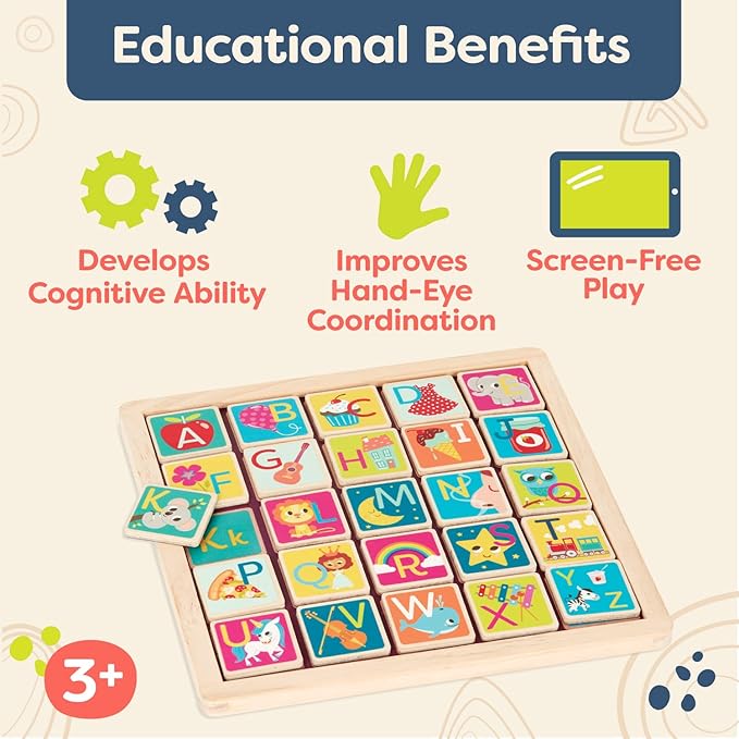 B. Toys- Magnetic Alphabetic- Wooden Alphabet Puzzle – Double-Sided Puzzle & Chalkboard – 26 Magnetic Letter Pieces – 2-in-1 Puzzle for Kids – 3 Years +