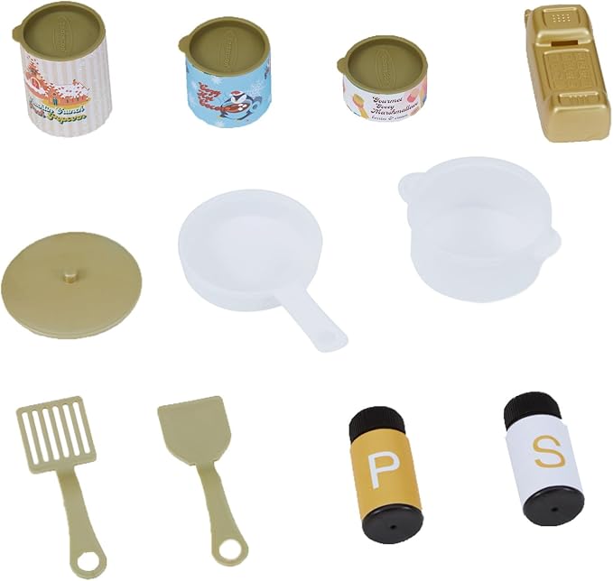 - INCLUDES 11 ACCESSORIES: Pots & pans, spatulas, pretend seasoning and food, along with a telephone to multi-task while chatting with friends