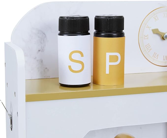 Teamson Kids Versailles Petite Classic Kids Wooden Interactive Play Kitchen, White with Faux White Marble and Gold