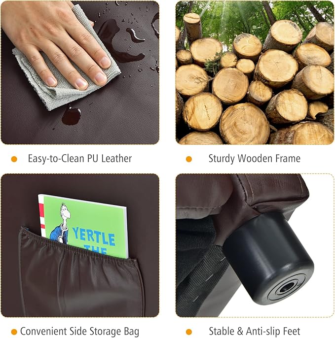 - Premium Material & Sturdy Construction: This kids lounge chair features PU leather surface, which is not only skin-friendly, but also waterproof and easy to clean with a damp cloth. In addition, supported by a solid wooden frame and 4 anti-slip feet, this upholstered recliner ensures excellent stability and can hold weights up to 110 lbs.