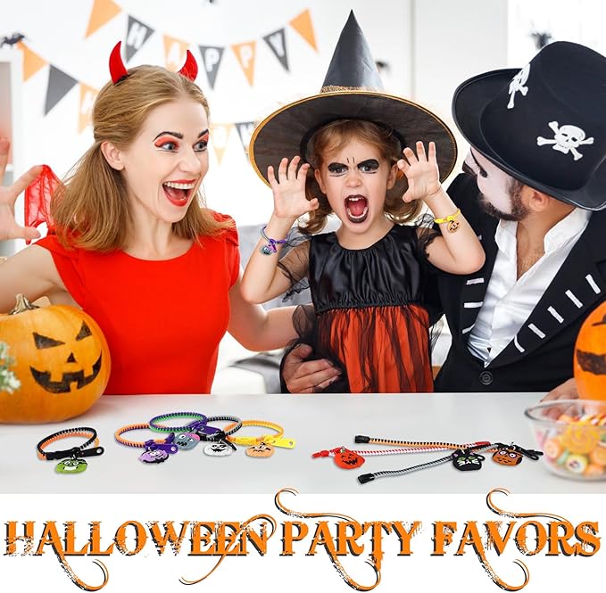 - Easy to Use: simply wear Halloween wristbands bracelets on your wrist, and the zipper on the bracelet can be opened or closed, which can wear according to your own mind, easy to use and easy to carry; These Halloween themed wristbands will give you and your kids a lot of Halloween fun