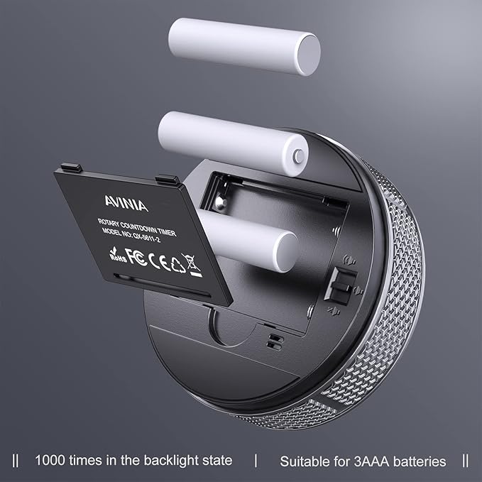 - 【 Energy saving & 365 days Guarantee】:Powered by 3 AAA batteries; if timer doesn't run and without any operation, display brightness will turn dim then light off in a few seconds. Don't worry it will not consume energy in the sleep mode. Each AVINIA TIMER has a full-year quality guarantee and detailed instructions manual, please rest assured to order.