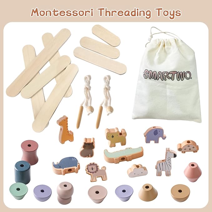 - 【Engaging Threading Toy Set】: Our wooden lacing bead toy require patience and concentration, which helps develop thinking skills, logic, and emotional control. It also improves pressure resistance and stimulates imagination and creativity.