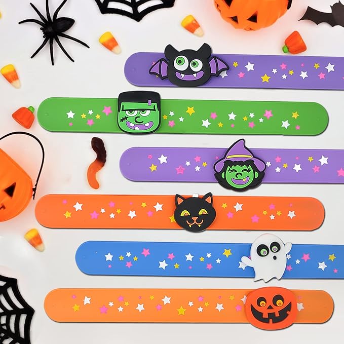 Welkin 6PCS Halloween Slap Bracelets For Kids,Colorful Silicone Bracelet, Soft and Safe Slap Bracelets Party Decorations Favors,Kids halloween Party Gift (Halloween)
