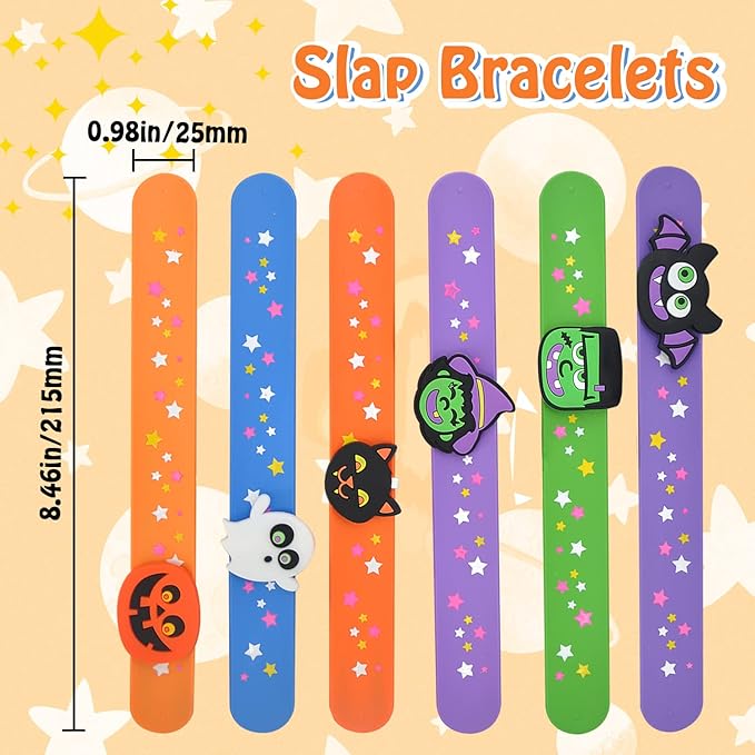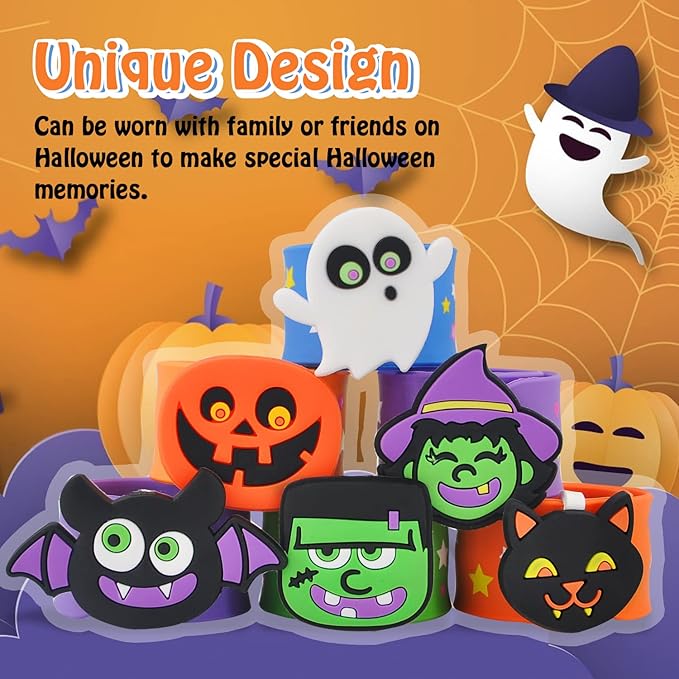 - 【Halloween Decorative Slap Bracelet】Each pack has 6 different design patterns, which can be combined freely, which is very suitable for Halloween party dress up.