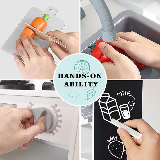 - Great Ideal Gift for Kids:Thiskids play kitchen is perfect for Kids who love to mimic the food preparation they see at home. toy kitchen provides engaging playtime while sparking imagination and creativity. kids kitchen With its fun, modern design, it's a great gift choice for children aged 3 and older.Realize their dream of being a Chef