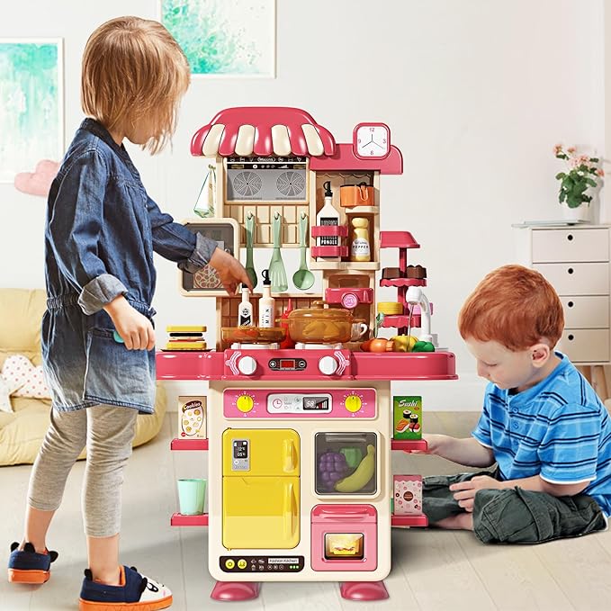 - Kitchen Toys To Play Pretend Kitchen : With multi-functional kids kitchen set, kids can have an interesting role-play game, being a great chef. Parents can be their guests and play a wonderful family game together. What’s more, kids’ creativity and hands-on skill will also be increased during the game.