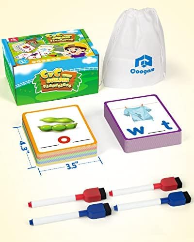 Coogam CVC Sight Words Flashcards, Short Vowel Spelling Game, Preschool Kids Learning Sight Words Supplies, Montessori Educational Writing Reading Toy Gift for 3 4 5 Years Old