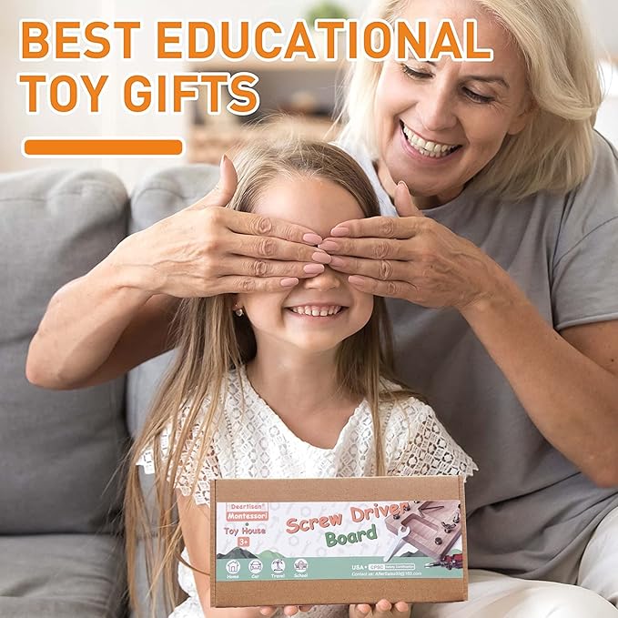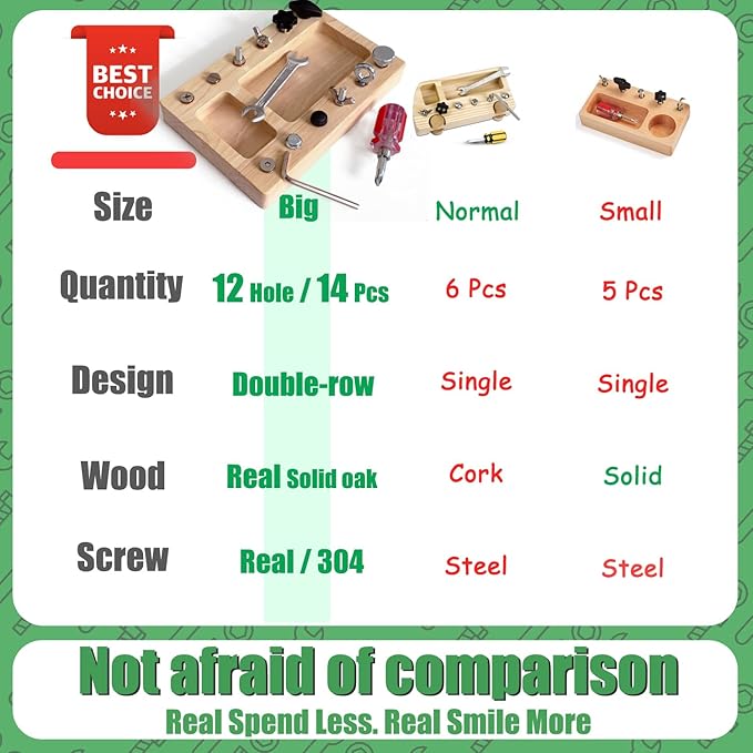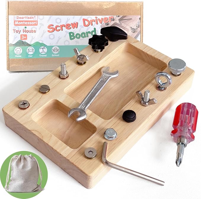 Montessori Screwdriver Board Set, Real 17 Pcs & 12 Holes Fine Motor Skills 3 4 5 +Kids Patience Basic Life Skill Educational Wooden STEM Toys for Toddler Preschool Materials Busy Sensory Tools