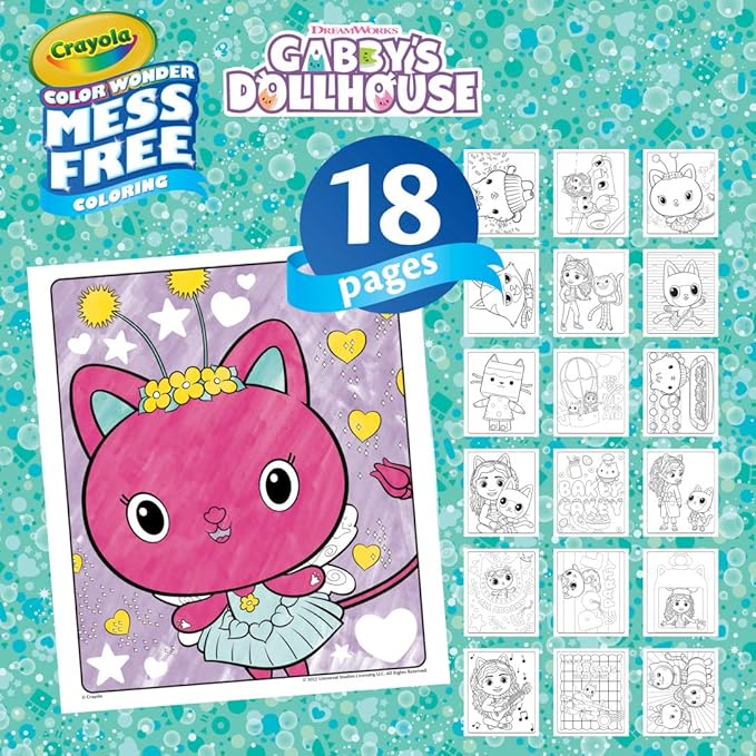 - COLOR WONDER SET: Contains 18 Gabby’s Dollhouse Coloring Pages and 5 Color Wonder Markers.