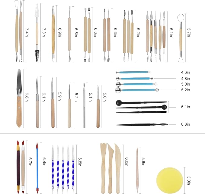 - Multiple Design: Different styles and sizes of pottery tools and clay sculpting tools to choose from, satisfying different detail sculpting need. This clay tool kit can be used to making dots, blending seams in clay, smoothing clay, remove excess mud, or use it for some art design, basically meet your various sculpting, carving, modeling, shaping, trimming, building need for different creative effect for your art craft projects.