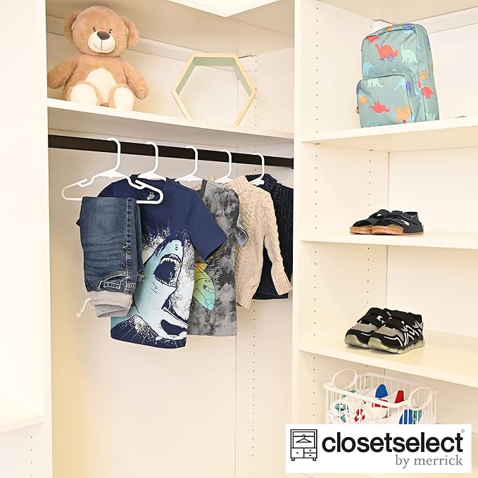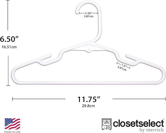 - PREVENT WRINKLES – Our Children Plastic Hangers are designed to have to sturdy notches that will help hold straps and tank tops in place. Closetselect’s Children Plastic Hangers are great for babies, infants and children size clothes from 0 to 8. They are perfect of children shirts, polos, button ups, pants, tank tops, dresses, spaghetti straps, sweaters, jackets and more.
