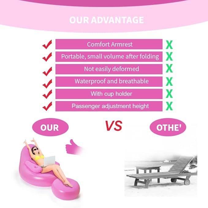 Nevife Inflatable Lounge Chair with Ottoman & Cup Holder, Portable Blow Up Sofa, Air Chaise Lounge,Lazy Couch for Camping,Gaming,Lunch Break,Garden,Party,Enjoy Sunbathing (Pump Not Incl.)-Pink