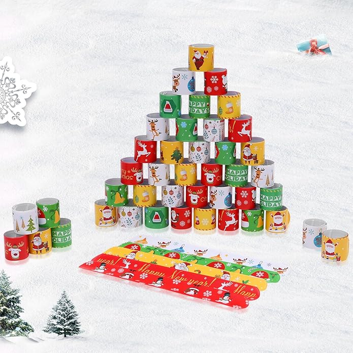 48PCS Christmas Slap Bracelets, Xmas Slap for Christmas Party Favor Decoration