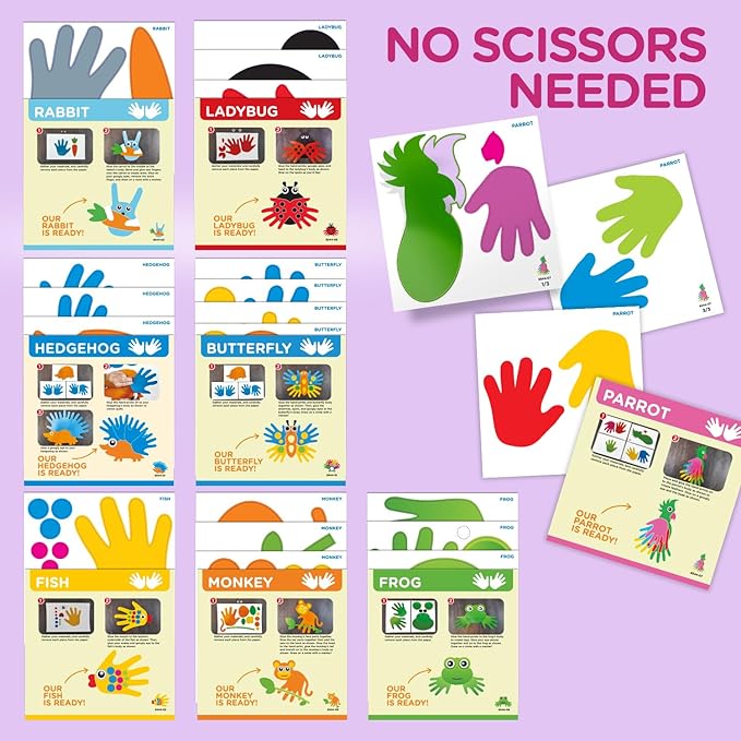 - Handprint kids craft kit- Craft and design 8 animal characters with handprint and other shape cutouts.