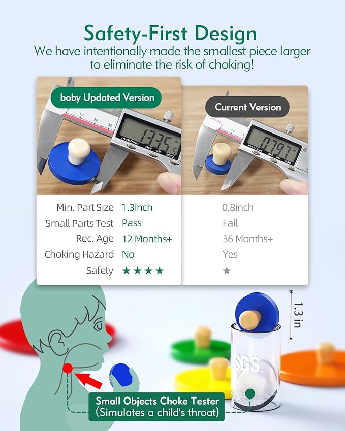 - 【Safety First】We use standards far exceeding regulations to create our toys, Our size puzzle successfully passed the Small Parts test. We have intentionally made the smallest piece larger to eliminate the risk of choking, guaranteeing a safe and enjoyable playtime for your child.
