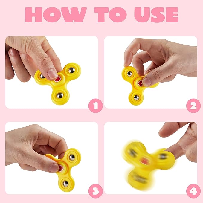 - UNIQUE DESIGN. There are 4 colors including red, orange, yellow and blue of the finger spinner set and 4 card designs. Easy to play, hold these fidget toys with one finger either side of the center and then turn it with your other hand, also you can play with one hand if you are skilled. Slight & pleasant sounds will relieve stress and anxiety, restore your mood, and create a fun atmosphere.