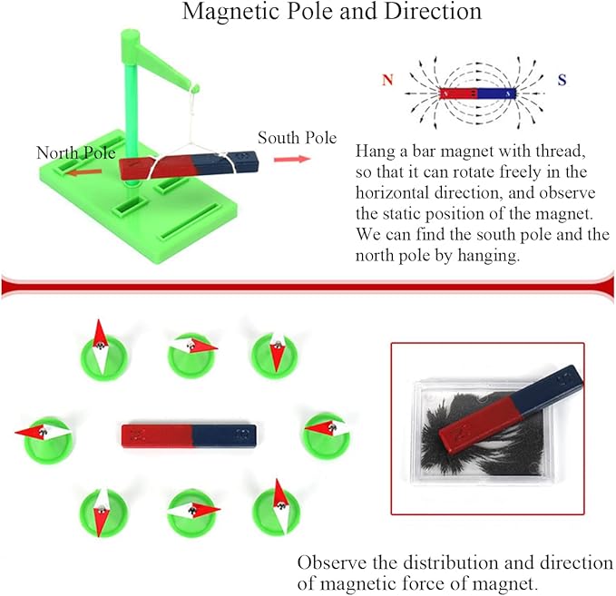 - 【Enhance children’s Scientific Knowledge】 The electricity and magnetism kit contains a list of experiments, according to which students can approach physics step by step, and complete different experiments from easy to difficult,such as magnetic trolley, compass experiment, magnetic field discovery, magnetic levitation experiment, electromagnet experiment, etc.