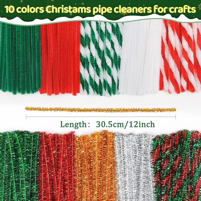 180 pcs Christmas Pipe Cleaners, Pipe Cleaners Craft, Arts and Crafts, Crafts, Craft Supplies, Art Supplies (Christmas Mixed)…