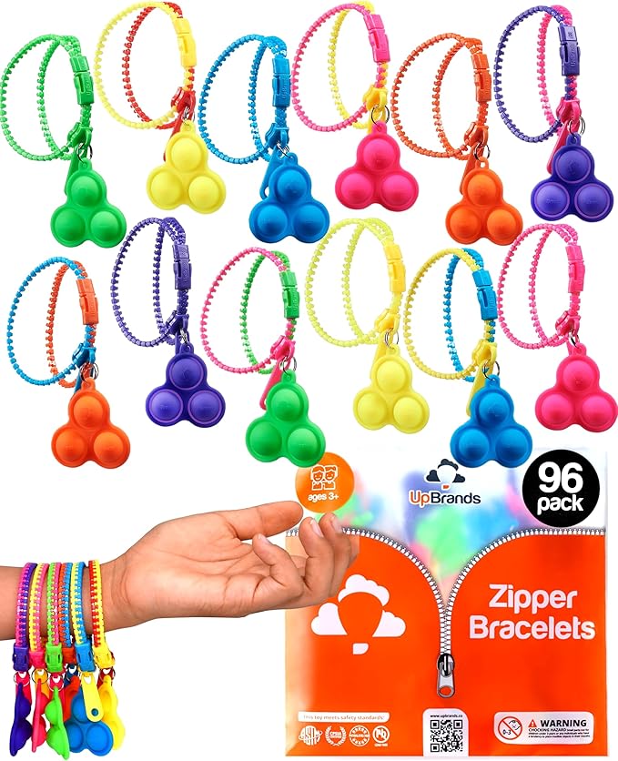 - Purchase with confidence: Enjoy a 30-day return policy if you need to return the product. We are committed to providing exceptional customer service, responding to inquiries within 24 hours. UpBrands Pop-It Fidget Zipper Bracelets Pack sells in bulk, so they have an excellent unit price compared to similar toys sold in vending machines at 1 dollar or more.
