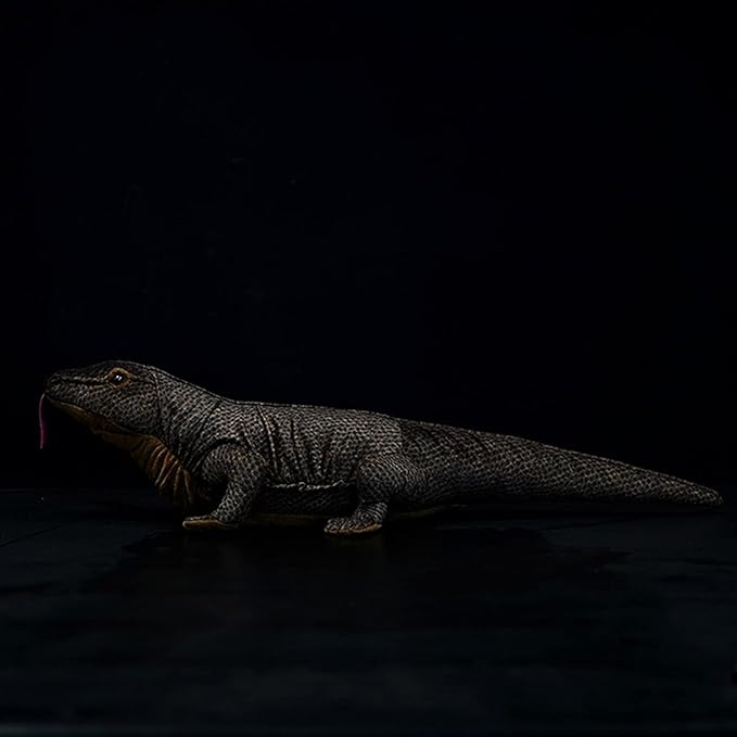 - REALISTIC APPEARANCE: Our little 30in long komodo dragon toy is brown texture all over, The adorable face and squeezable body of our monitor lizard plush are made from premium cloth and filler. its the brown fur is smooth and soft, the overall shape design is realistic , and the face design is unique, very realistic. The smart eyes make it more vivid and lifelike.