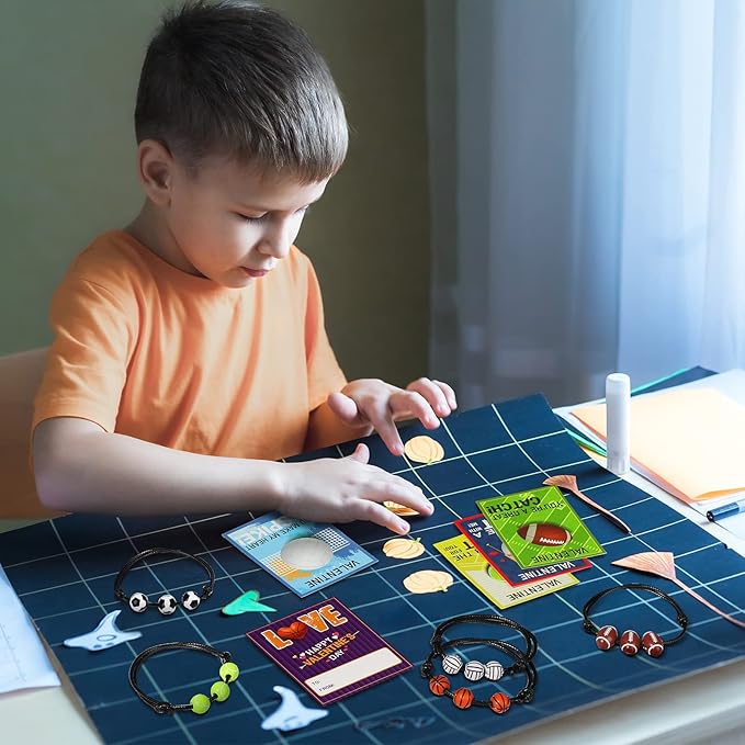 - Combination Packages: 36 pcs adjustable sport beads ball charm bracelets, bracelets come in 6 designs of 6 each; Not only that, but there are 40 clear stickers to help secure the bracelet; 36 Pcs sports Valentine's day cards with ball pattern, card come in 6 designs of 6 each, abundant quantity and diverse styles that can meet your various preferences