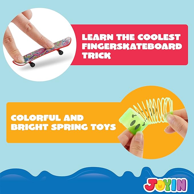 - 60 Pcs Party Favors Set: Our party favors set includes 60 pcs of 10 kinds of popular and trending fidget,9 Mochi squishy toy, 9 slap bracelets, 6 pop keychains, 4 pop fidget spinner, 6 pop tubes, 6 pop bracelets, 6 finger skate boards, 6 mini spring toys, 6 sticky hands