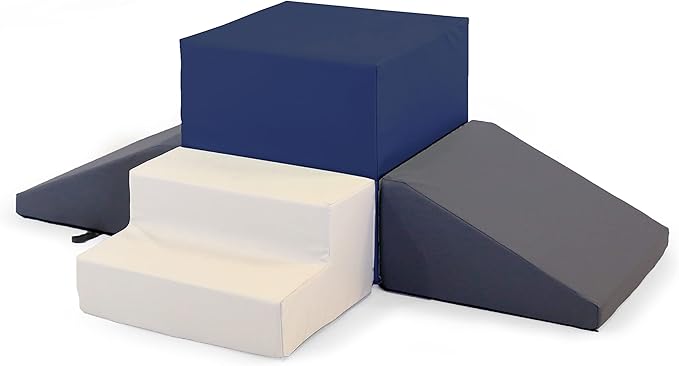 Foamnasium Gymnasium, Indoor Foam Playset, 4 Piece Soft Toddler and Active Kids Play Foam Climber for Crawling, Climbing, Sliding and Jumping, Made in The US, Enhanced Navy Multi