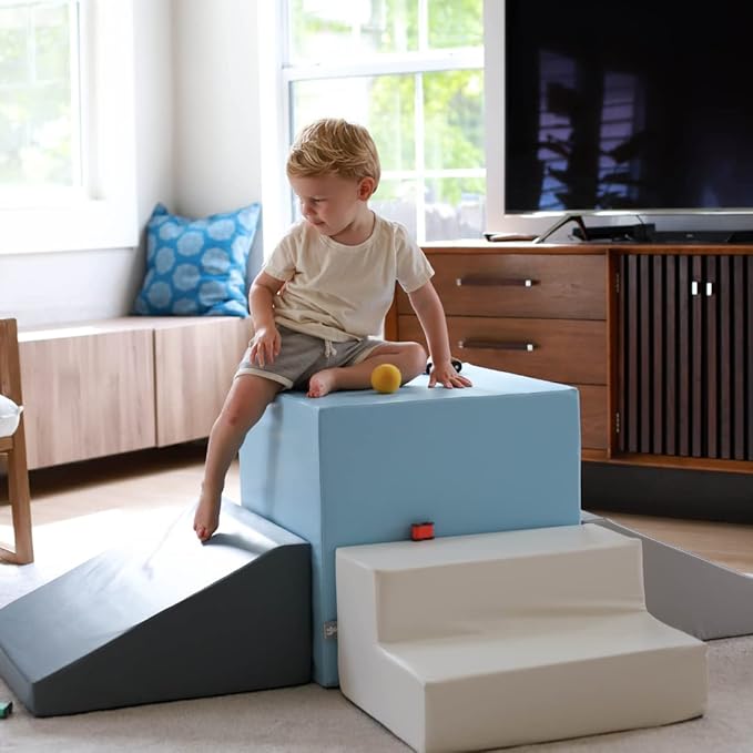 Foamnasium Gymnasium, Indoor Foam Playset, 4 Piece Soft Toddler and Active Kids Play Foam Climber for Crawling, Climbing, Sliding and Jumping, Made in The US, Enhanced Camel