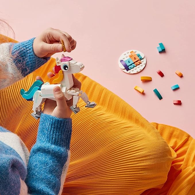 • Standing over 13 cm (5 in.) tall, the LEGO Magical Unicorn toy is a great size to be played with at home or taken with kids on their travels